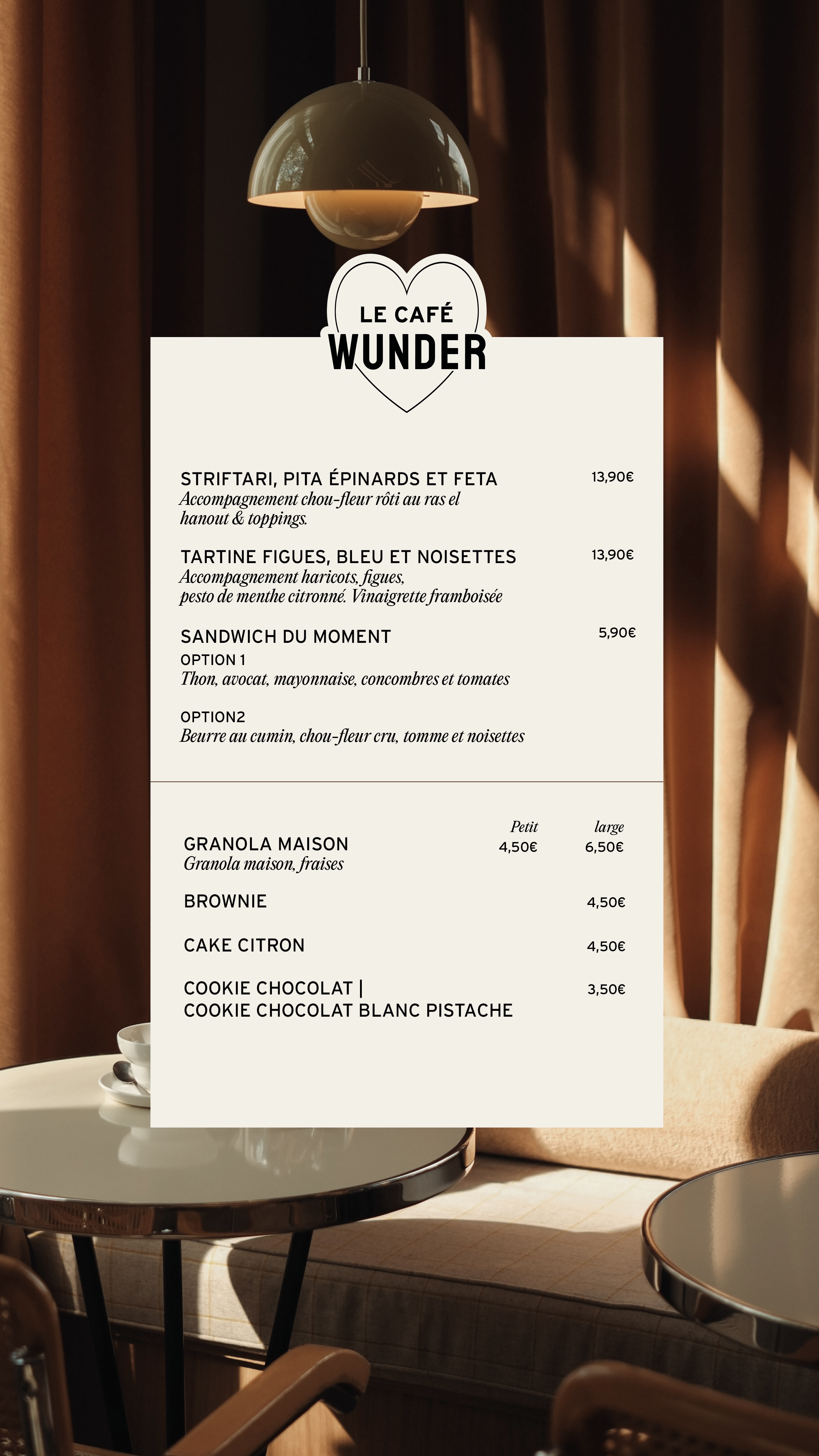 Du lundi au vendredi, nous vous proposons de bons plats faits maison, du café de spécialité, une jolie carte de thé, des jus frais & une carte de pâtisseries vous attendent.
